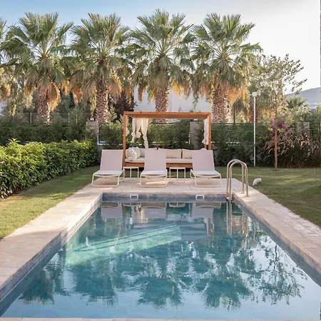 Situat la 12 minute de mers pe jos de Yahsi Beach, Mimosa Mansions Villa Bodrum cu 3 dormitoare, invită oaspeții să se relaxeze pe o terasă.